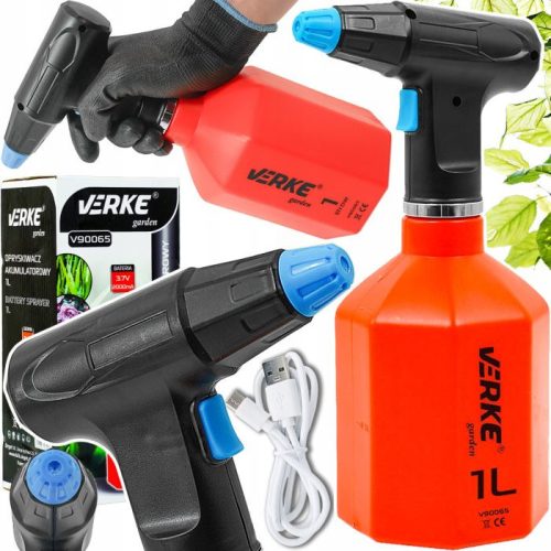 A Verke akkumulátoros permetezőt kerti munkákhoz tervezték, de otthon is hasznos lesz. Kicsi és kényelmes készülék 1 literes űrtartalommal. Lehetővé teszi a folyadék permetezését a ködből az erős sugárig. A permetezőgép 3,7 V-os, 2000 mAh kapacitású akkumulátorral működik, amely akár 2 órás működést tesz lehetővé.