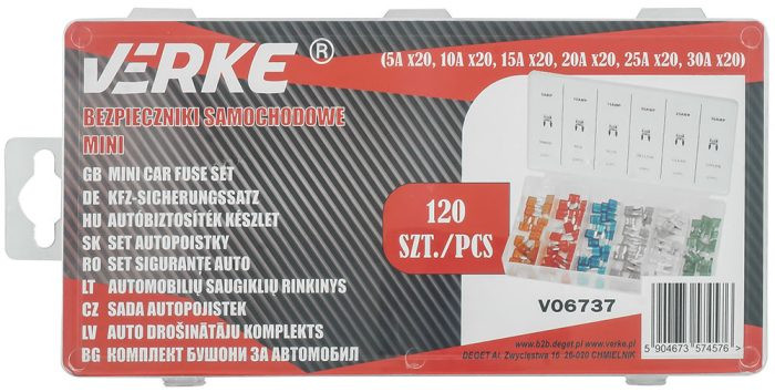 A VERKE 120 db MINI lemezes autóbiztosíték-készlete egy rendszerben átfogó megoldást jelent minden vezető számára, aki biztos akar lenni abban, hogy szükség esetén hozzáférhet a megfelelő biztosítékhoz. A készlet 120 különböző áram- és feszültségértékű biztosítékból áll, amely széles körű alkalmazást biztosít különféle típusú autókhoz.