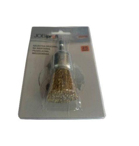 A JOBIPROFI drótkefe kis méretű, 30 mm átmérőjű, réz sörtékkel és HEX (hatszögletű) száras kialakítással.
