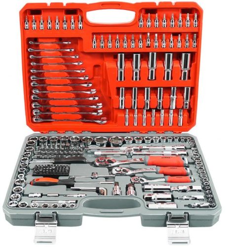 Ez a kiváló minőségű dugókulcskészlet tökéletes mind professzionális műhelybe, mind otthoni garázsba. A készlet 216 különböző méretű darabból áll, így számos műhelyi feladat hatékony elvégzését teszi lehetővé. A dugókulcsok és a dugókulcs-behajtó tartós CR-V króm-vanádium szerszámacélból készültek, így hosszú ideig megőrzik eredeti megjelenésüket. A készlet lehetővé teszi a nagyon nagy terhelést és precíziót igénylő munkákat, beleértve a különböző névleges méretű menetes csatlakozások meglazítását és meghúzását is.