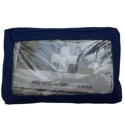 Elsősegély nyújtáshoz használatos, kompletizálva az MSZ 13553 szabvány és az 50/2009 (IX.30.) KHE-rendelet szerint.