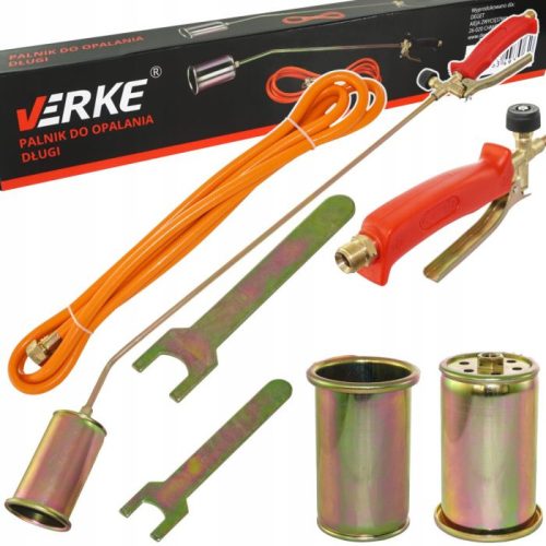 Verke gázperzselő, perzselő, disznóperzselő, gázégő. Az égő kényelmes fogantyúval és gázáramlás-szabályzó gombbal rendelkezik.