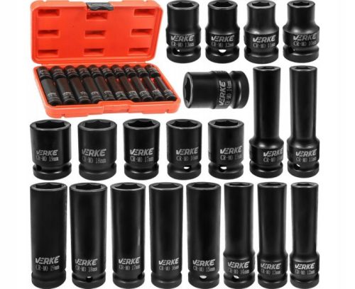 Gépi dugókulcs klt. 20db-os, hosszú/rövid 1/2" 10-19 mm