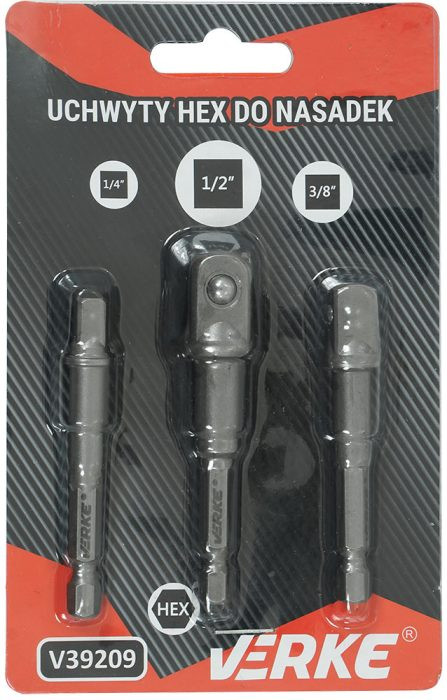 Tartós acélból készült, feketített, 3 db hatszögletű adapter készlet aljzatokhoz.