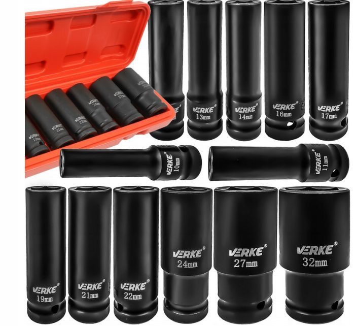 Hosszú dugókulcs klt. 13db-os ütvecsavarozóhoz 1/2" 10-32mm VERKE
