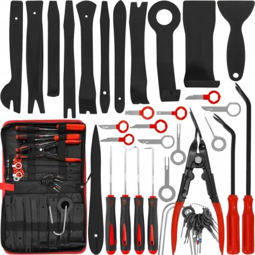 Speciális lehúzók autókárpit és díszlécek eltávolításához. A készlet 43 darabot tartalmaz, amely lehetővé teszi a kárpit gyors eltávolítását bármilyen autóbelsőből. A készlet alkatrészei edzett nejlonból készültek. Speciális profilokkal rendelkeznek, amelyek lehetővé teszik az emelőerő használatát a kárpitkapcsok eltávolításakor. A készlet egyik jelentős előnye, hogy nem karcolják meg a kárpitot vagy a festett felületeket. A készlet autóipari, kárpitozási, karosszéria- és fényezőműhelyekben végzett munkákhoz ajánlott.