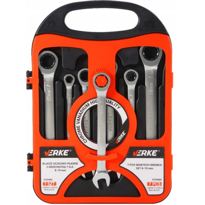 Egy racsnis kombinált kulcskészlet (72 fog) tartós króm-vanádium CrV acélból készül. A készlet a legnépszerűbb kulcsméreteket tartalmazza. A kulcsok tökéletesek professzionális autószervizekhez és műhelyekhez, valamint otthoni garázsokhoz.