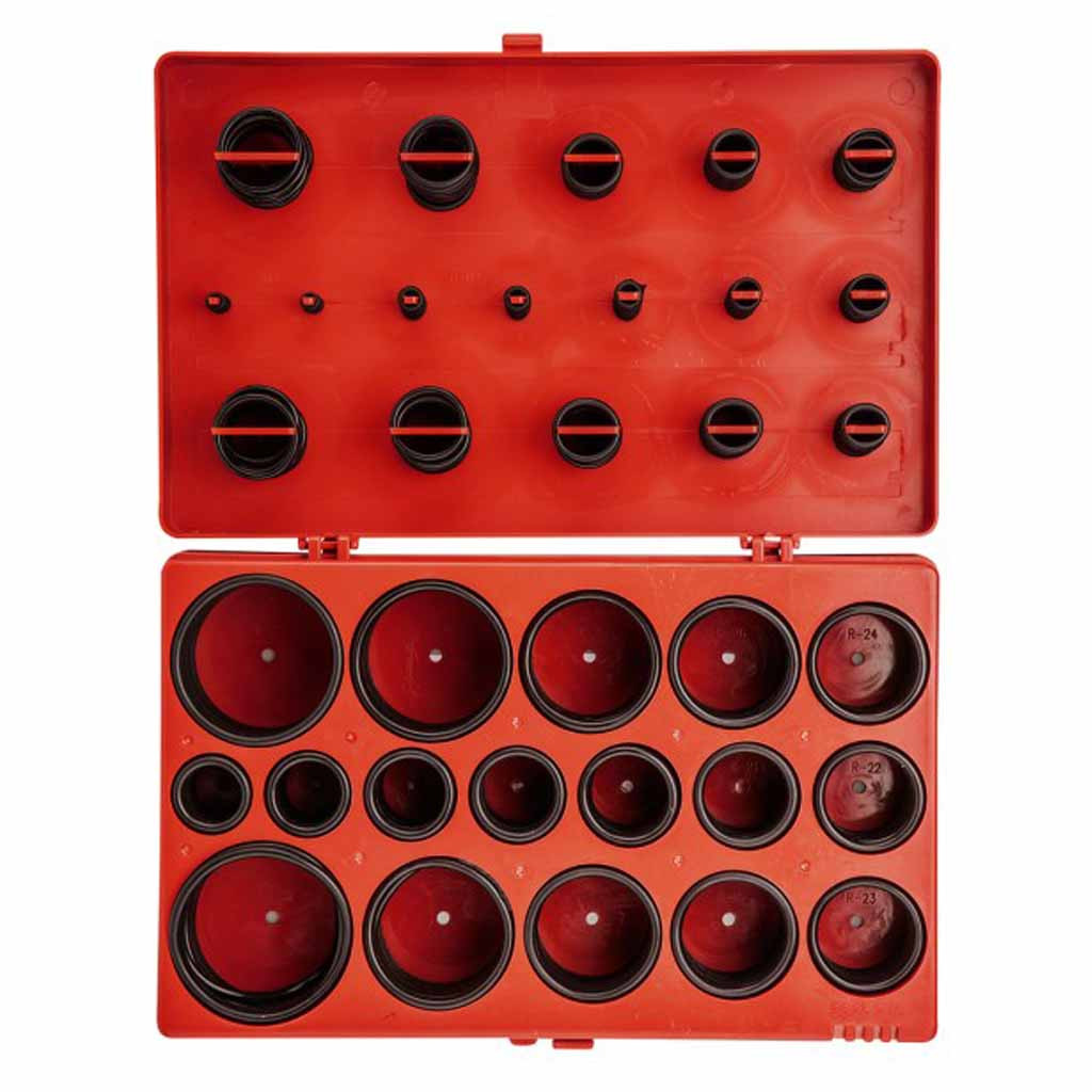 419 darabos gumi O-gyűrű készlet. Ezek a tömítések hidraulikus munkákhoz alkalmasak, elengedhetetlenek menetes csatlakozásokhoz és autójavításokhoz. Ellenállnak többek között a motorolajoknak, zsíroknak, hidraulikafolyadékoknak és alkoholnak. Praktikus tárolórekeszben vannak csomagolva.