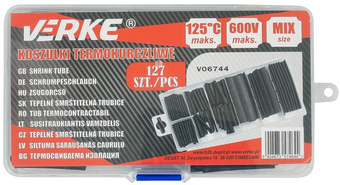 Ez a 127 darabos VERKE zsugorcső készlet ideális kábelek, vezetékek és egyéb tárgyak szigetelésére és védelmére. A csövek fekete színűek, és különböző átmérőkben és hosszúságokban kaphatók, így biztosan találsz olyat, ami tökéletesen illeszkedik a projektjeidhez.